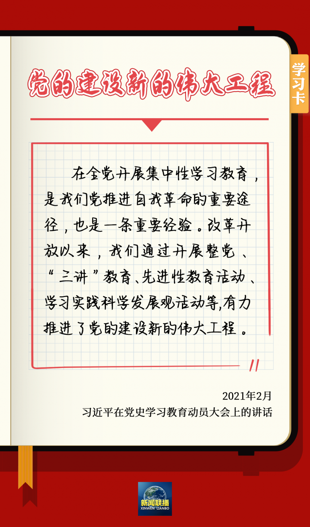 6月16日出版的《求是》杂志发表习近平的重要文章强调,把党的建设作为一项伟大工程来推进,是立党立国、兴党强国的一大法宝。新时代10年,我们把思想建设作为党的基础性建设,持续开展党内集中教育,使党员、干部补足精神之钙,坚守共产党人精神家园。