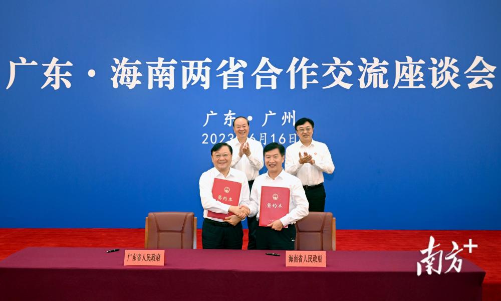 6月16日下午,广东、海南在广州举行了推动两省相向发展战略合作协议签署活动,省委书记黄坤明、海南省委书记冯飞见证签约。