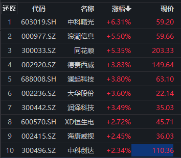 数字经济ETF(159658)跟踪中证数字经济主题指数 (931582)。截至发稿,该指数成分股中,中科曙光涨超6%,浪潮信息、同花顺涨逾5%,德赛西威、澜起科技、大华股份等跟涨。