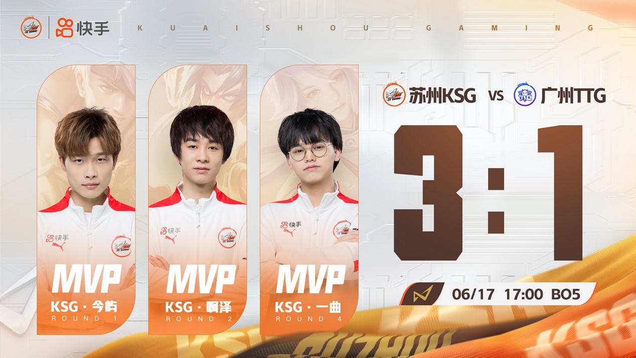 首战代表苏州征战赛场的有五位选手:@苏州KSG啊泽 对抗路选手、战队队长,同时也是团队中的定海神针,@苏州KSG今屿 打野位选手,操作拉满、是队伍中的关键先生。@苏州KSG一曲 中路选手,善于寻找机会、是队伍节奏的发动机。@苏州KSG小玖 发育路选手,敢打敢拼,如一把锋芒毕露的利剑。@苏州KSG小A 游走路选手,稳重带秀、是队友们最为坚实的后盾。随着场馆内声声“乘梦姑苏,为梦而战”口号喊响,越来越多的电竞爱好者感受到了苏州独特的人文风情与积极的竞技精神。