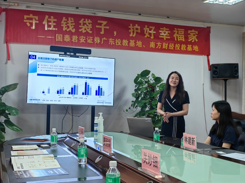 活动邀请到国泰君安证券首席投资顾问龙小琴、国泰君安证券资深投资顾问朱惊天,围绕全面注册制下当前宏观经济与资本市场解读、防范非法集资的案例等话题进行分享,与企业员工进行投资理财知识问答互动,加深对我国资本市场发展的认知。