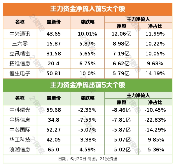 6月20日,大盘全天震荡分化,三大指数涨跌不一。南财金融终端显示,截至收盘,沪指跌0.47%,深成指涨0.28%,创业板指涨0.28%。盘面上,机器人概念股再度活跃,步科股份、埃夫特、南方精工、新时达等超10股涨停。AI概念股走势分化,ChatGPT概念股午后拉升,科大讯飞、万兴科技均大涨创历史新高;服务器、算力方向继续活跃,中兴通讯涨停,寒武纪涨超10%;CPO方向一度展开调整,意华股份、永鼎股份跌超5%。军工股震荡走强,航发科技、北斗星通涨停,中国船舶一度涨停。下跌方面,消费股陷入调整,来伊份跌停,道道全接近跌停。沪深两市全天成交额10900亿元,较上一交易日缩窄167亿元。