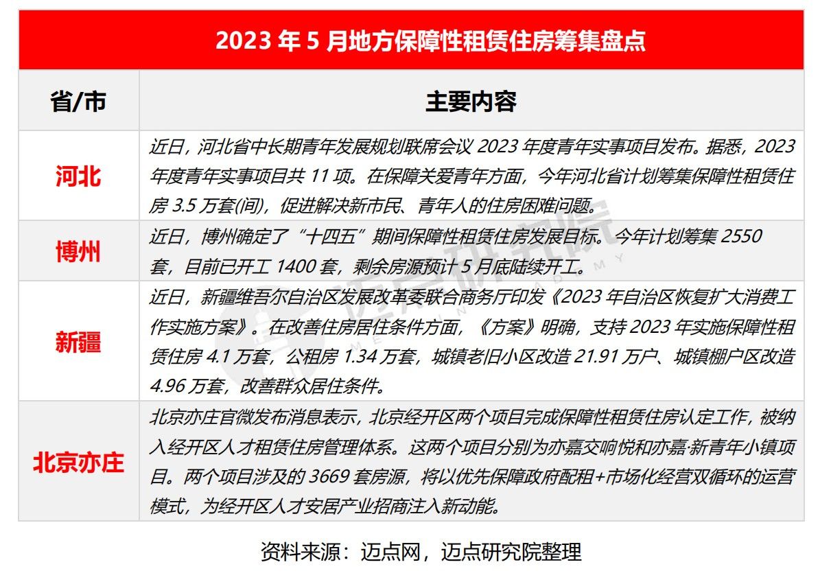 5月,河北、博州、新疆、北京亦庄、上海浦东等地区、西安雁塔、日喀则市等省市地区继续公布保障性租赁住房的筹集进度和供应计划。