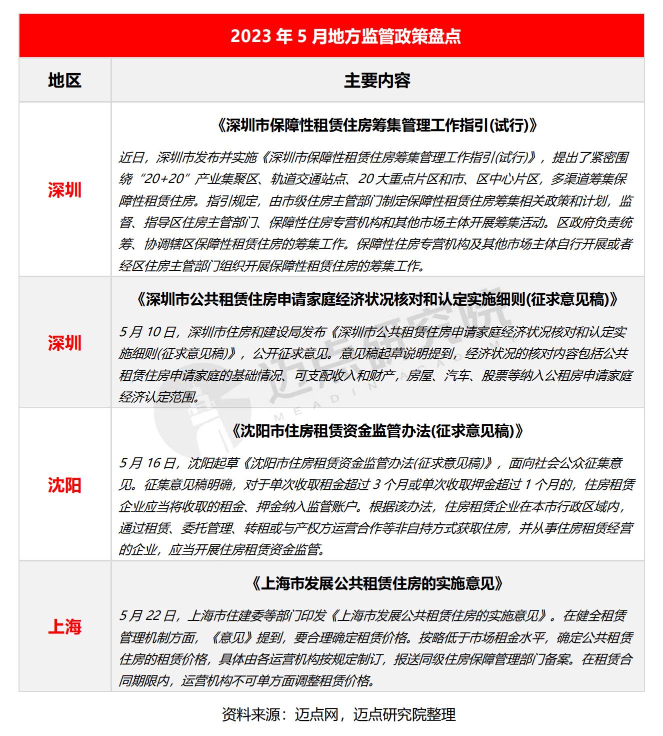 深圳动作频频,除了发布保障性租赁住房筹集管理工作指引外,还发文拟严查公租房申请者家庭经济状况,加强对租赁租房的管理;沈阳针对住房租赁资金出台相关监管政策,上海则在支持探索创新公共租赁住房的投融资机制的基础上要求合理确定租赁价格,推动住房租赁行业健康发展。