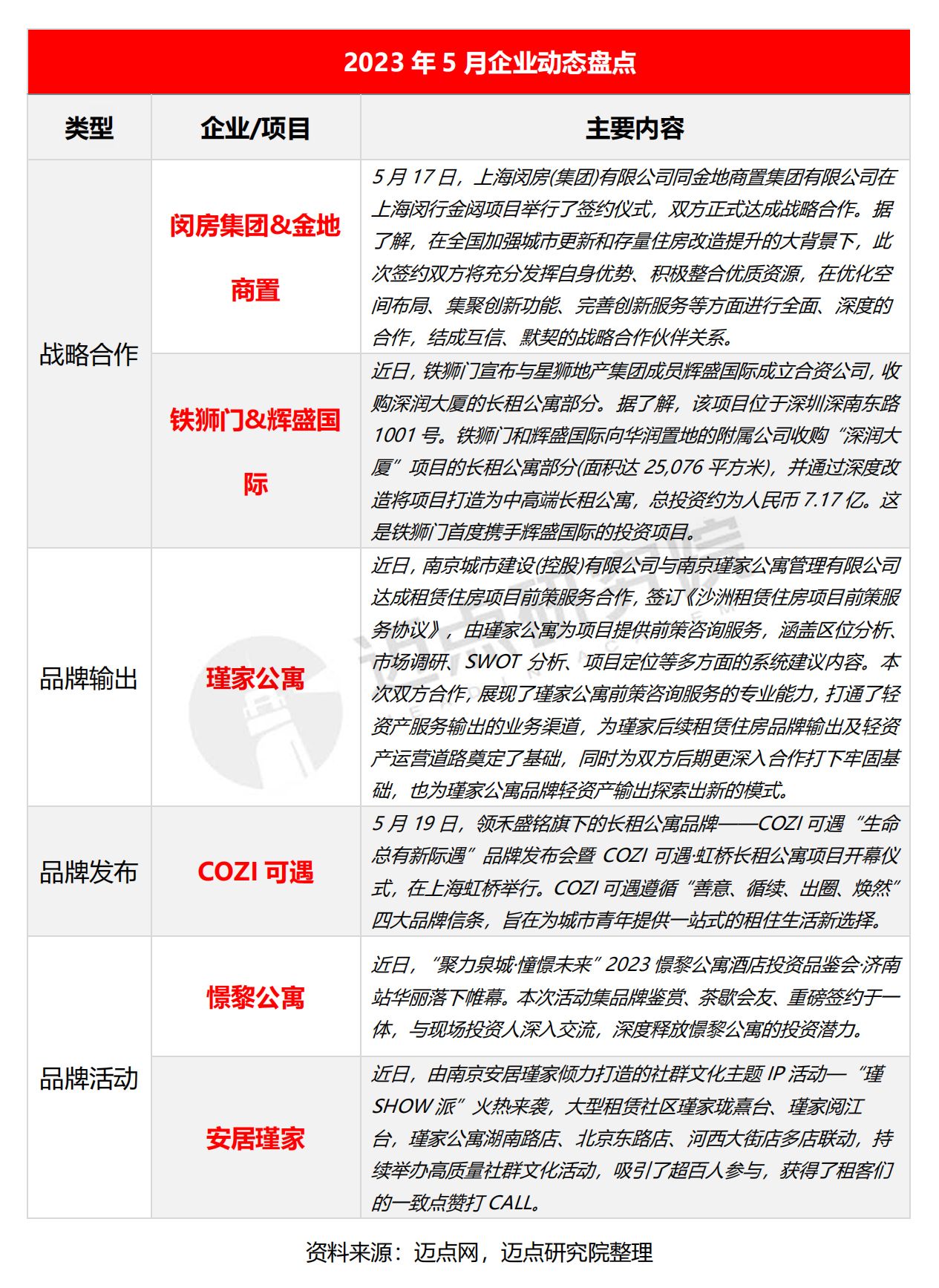战略合作方面,闵房集团&金地商置达成战略合作,整合优质资源、铁狮门联手辉盛国际收购华润置地深润大厦长租公寓楼层开启全新商业合作模式;品牌输出方面,瑾家公寓与南京城市建设(控股)有限公司达成租赁住房项目前策服务合作,探索品牌轻资产输出新模式;另外,品牌发布方面,领禾盛铭旗下的长租公寓品牌——COZI可遇上海虹桥开幕;品牌活动方面,憬黎公寓举办聚力泉城·憧憬未来”活动、安居瑾家打造“瑾show派”主题社群活动ip,多店联动,租客参与度高。