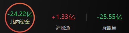 北向资金半日净卖出24.22亿元,其中沪股通净买入1.33亿元,深股通净卖出25.55亿元。