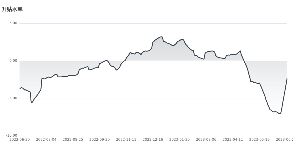 今日该指标值为-2.32%,目前该指标处于近一年较低区间,说明投资者对认为A股市场趋于触底反弹。反映期货市场投资者对市场的看法,该指标越高说明投资者认为当前市场较强,越低则说明认为市场相对较弱,因而与上证指数正相关。