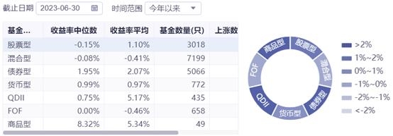 《投资快报》记者从同花顺数据看到,截至6月30日,今年上半年公募基金业绩分化明显,商品型基金涨幅居前,QDII型基金表现次之,权益类基金表现逊色。