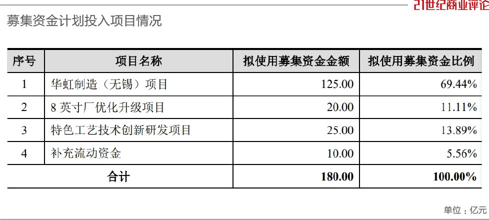 一举融资180亿,华虹主要为一个大项目。