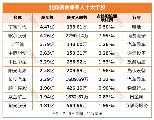 据21投资通智能监测,7月3日,北向资金净买入26.85亿元,其中沪股通净买入18.67亿元,深股通净买入8.19亿元。