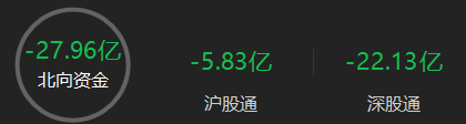北向资金半日净卖出27.96亿元,其中沪股通净卖出5.83亿元,深股通净卖出22.13亿元。