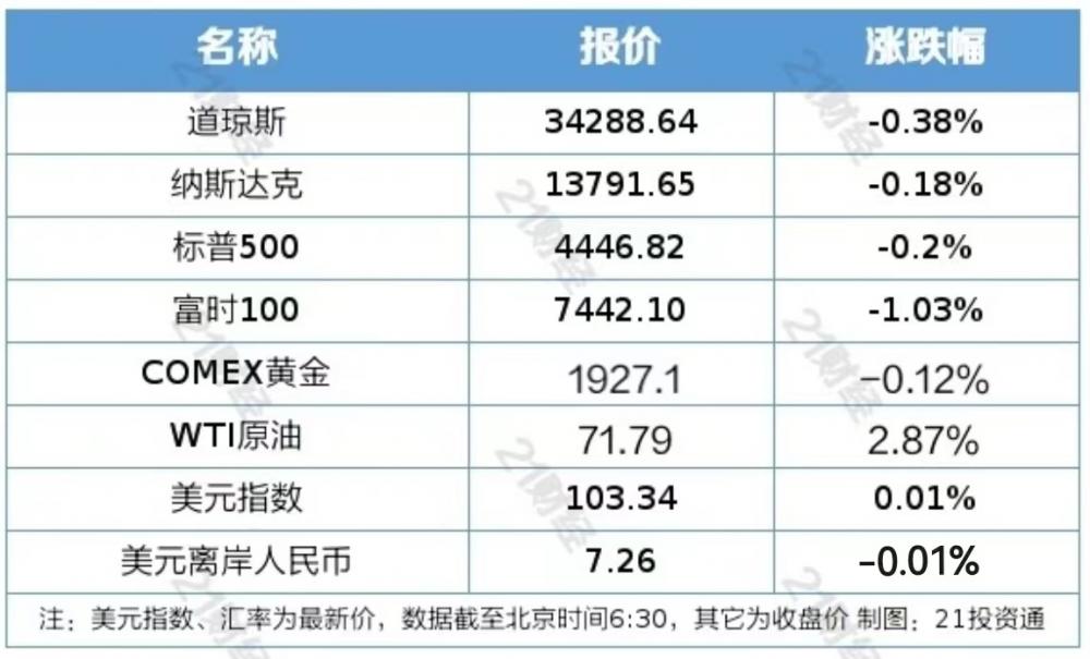 纽约股市三大股指5日下跌。截至当天收盘,道琼斯工业平均指数比前一交易日下跌129.83点,收于34288.64点,跌幅为0.38%;标准普尔500种股票指数下跌8.77点,收于4446.82点,跌幅为0.20%;纳斯达克综合指数下跌25.12点,收于13791.65点,跌幅为0.18%。