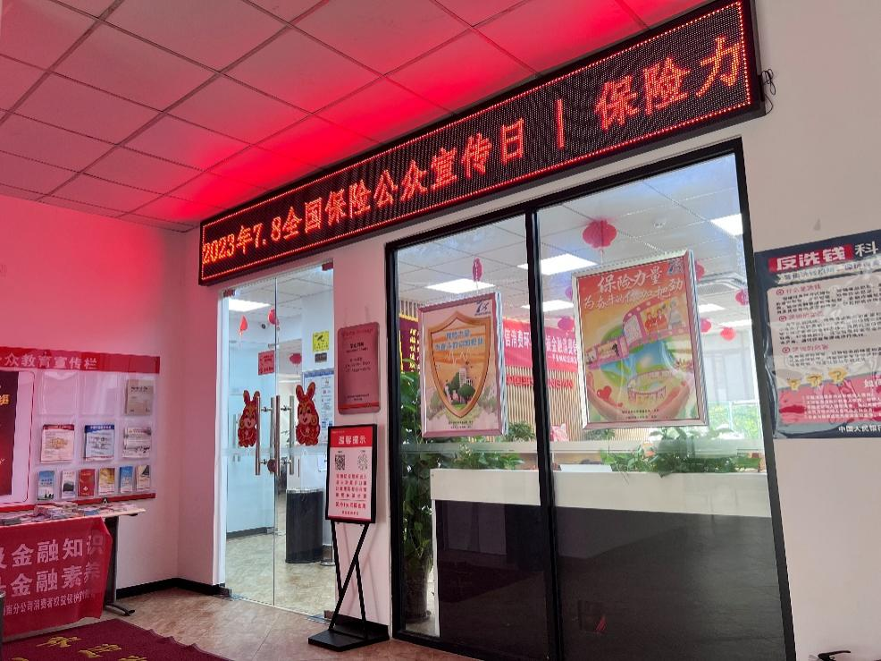 平安财险琼海中心支公司营业网点进行“7.8保险公众宣传日”主题宣传布置,积极营造浓烈的活动氛围,通过LDE显示屏、海报展示、宣传折页等多种形式,引导客户及公众关注活动主旨及理念,提升广大消费者的金融意识。
