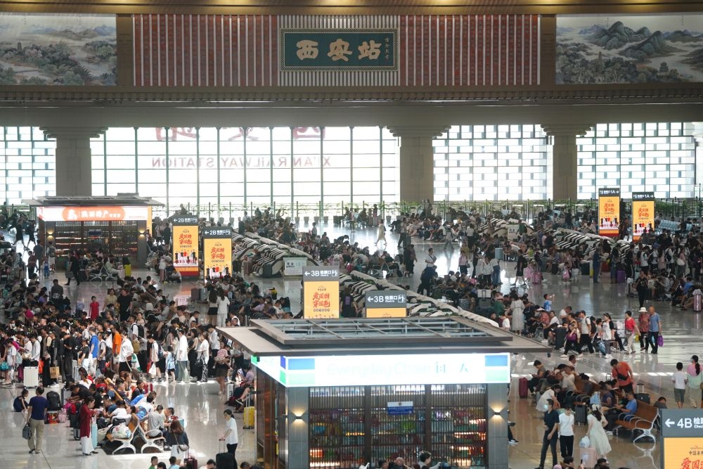 7月11日,旅客在西安站候车大厅候车。 (中国铁路西安局集团公司供图)