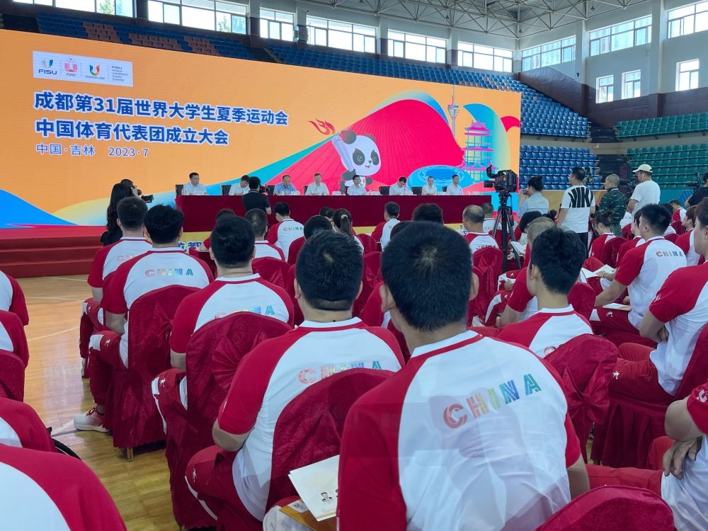 成都第31届世界大学生夏季运动会中国大学生体育代表团成立大会12日上午在吉林省长春市召开。中国代表团由700多人组成,其中411名运动员将参加全部18个大项的角逐,实现了“满项报名”的目标。