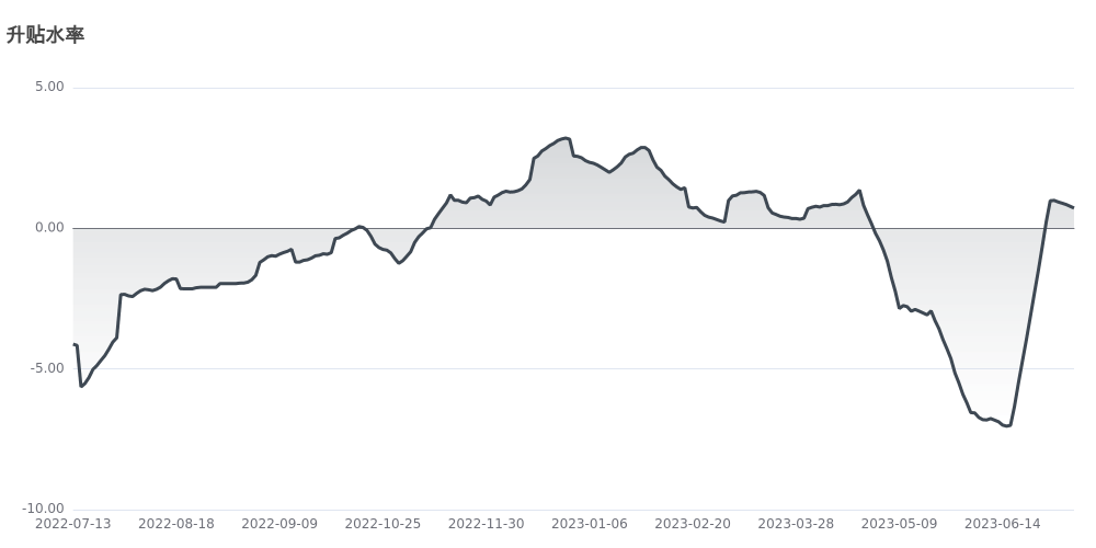 今日该指标值为0.72%,目前该指标处于近一年中立区间,说明投资者对A股持中立情绪。反映期货市场投资者对市场的看法,该指标越高说明投资者认为当前市场较强,越低则说明认为市场相对较弱,因而与上证指数正相关。