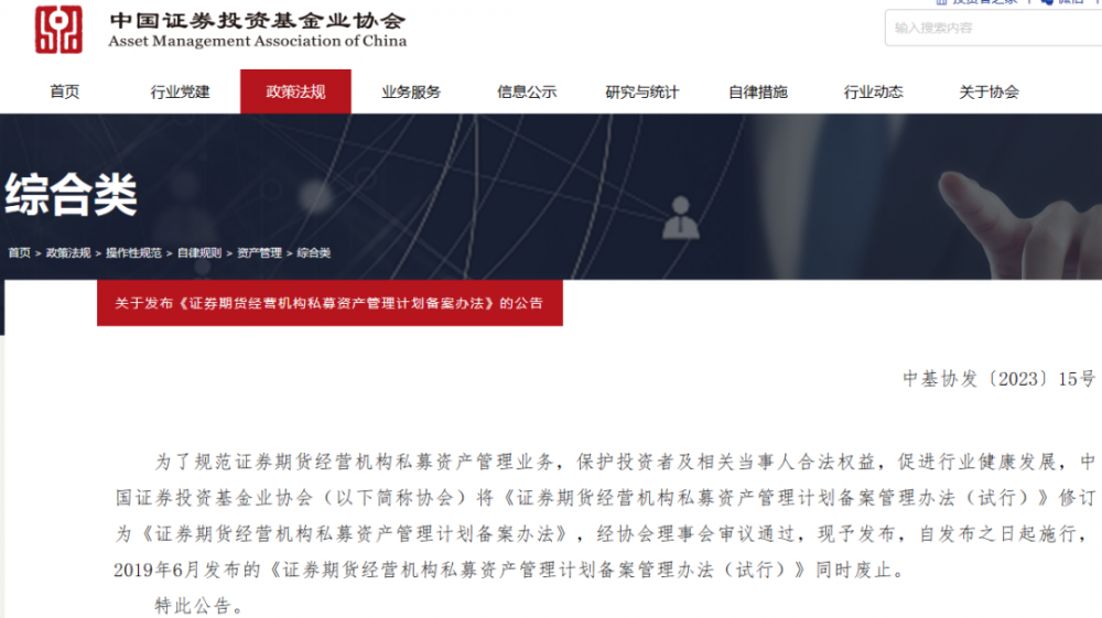近日,为进一步优化私募资管备案和自律管理工作,保护投资者及相关当事人合法权益,促进行业健康有序发展,中国证券投资基金业协会发布修订后的《证券期货经营机构私募资产管理计划备案办法》(以下简称《办法》)及修订说明。