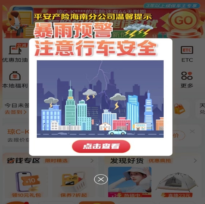 根据气象信息制作宣传文章,通过公司面向个人及企业客户的平安好车主、平安企业宝APP平台发布灾害预警宣传,并动员公司员工通过微信朋友圈、微信群等形式转发,提醒客户做好相应的防灾防损措施。