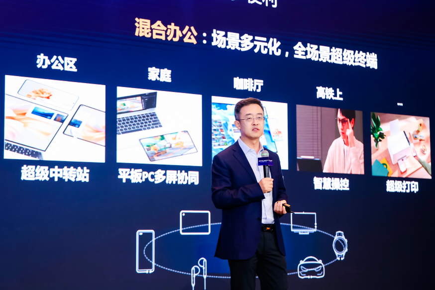 针对混合办公时代下的效率管理和多终端协同合作问题,贺磊提到,华为终端商用产品已实现了办公全场景覆盖,并以可靠的品质和高效的智慧体验,持续赢得商用客户的一致好评。更重要的是,华为还持续下苦工,不断为用户带来高效创新的使用体验,比如PC与手机的“碰一碰”连接,各种大小屏设备的自然切换,以及文件互传/搜索等功能,大大提升了用户的办公效率。