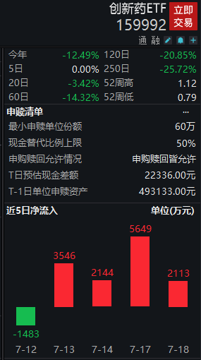 值得注意的是,创新药ETF(159992)近4个交易日连续获资金净流入,累计净流入额超1.3亿元。