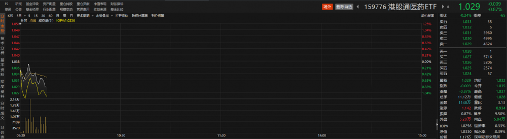 跟踪该指数的港股通医药ETF(159776)盘中走低,截至发稿,跌幅为0.87%,但盘中维持溢价交易,发稿时溢折率为0.33%。