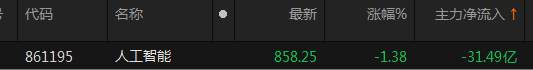 今日(7月20日),人工智能概念开盘下挫,遭主力资金净卖出超31亿元。
