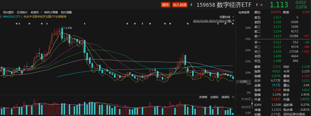 ETF方面,跟踪数字经济指数(931582.CSI)的数字经济ETF(159658)持续走弱,截至发稿,该ETF跌超1%,盘中持续溢价,溢折率为0.27%,换手率2.45%,成交额接近760万元。