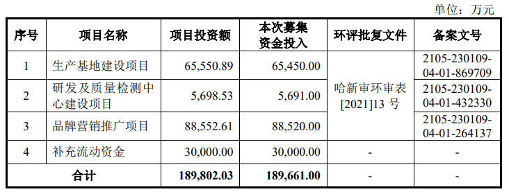 本次上市,敷尔佳计划募资18.97亿元,将用于生产基地建设项目、研发及质量检测中心建设项目、品牌营销推广项目以及补充流动资金。