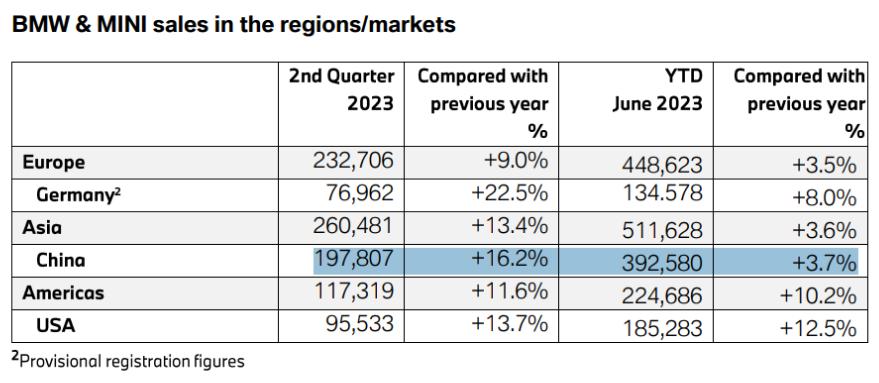 7月上旬,宝马集团披露数据,BMW和MINI品牌,二季度在中国市场售出19.78万辆,相较一季度,多卖了3034辆。