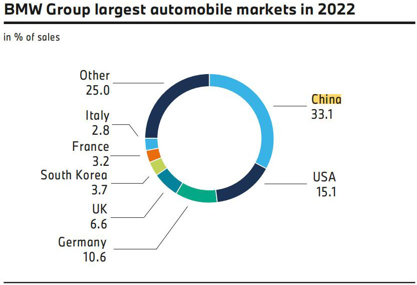 2022年,宝马全球总共卖240万辆车,中国市场的销量为79万辆,占比达33%。