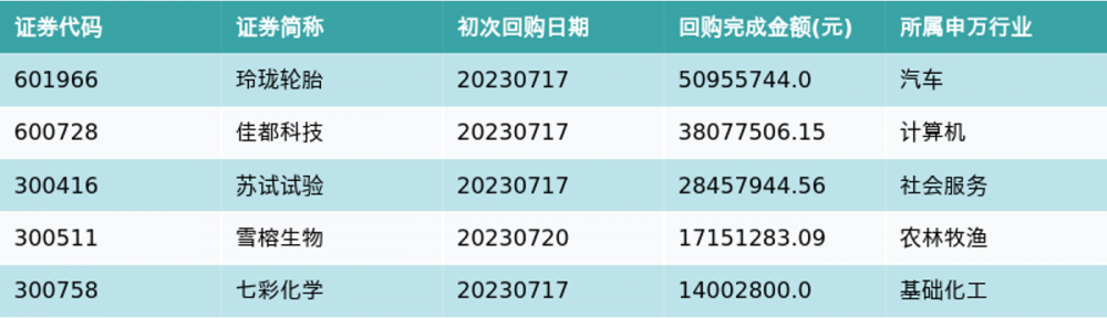 上周共有34条开始执行回购公告,其中执行金额最多的5条公告为: