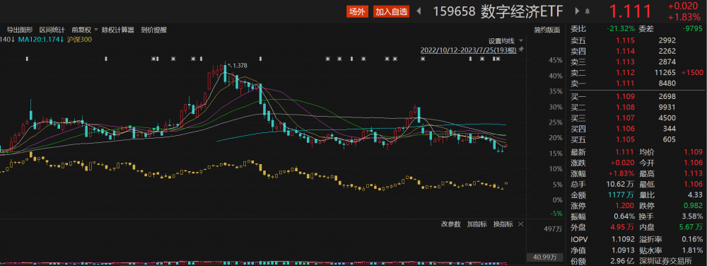 ETF方面,跟踪中证数字经济主题指数(931582.CSI)的数字经济ETF(159658)高开高位震荡,截至发稿,该ETF涨超1.83%,盘中溢价交易,溢折率0.16%,成交金额突破1100万元,换手率3.58%,交投活跃。