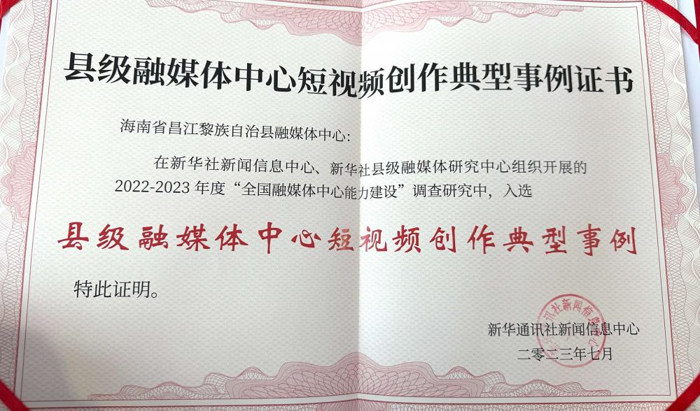 论坛介绍全国融媒体中心能力建设专题调研情况,展示典型事例。其中, 昌江融媒体中心在新华社新闻信息中心、新华社县级融媒体研究中心组织开展的2022-2023年度“全国融媒体中心能力建设”调查研究中, 报送的《陶凤交:甘做“绿色长城”的忠诚卫士》 入选 “县级融媒体中心短视频创作典型事例”,为全国23个、海南唯一入选的县媒案例。
