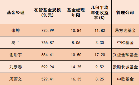 景顺长城基金经理刘彦春以599.94亿元的管理规模位居第四,任职基金经理14.25年,几何平均年化收益率达到9.52%。