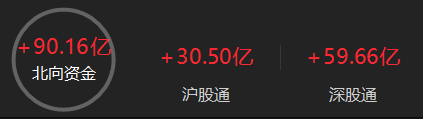 北向资金半日净买入90.16亿元,其中沪股通净买入30.50亿元,深股通净买入59.66亿元。