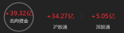 北向资金半日净买入39.32亿元,其中沪股通净买入34.27亿元,深股通净买入5.05亿元。