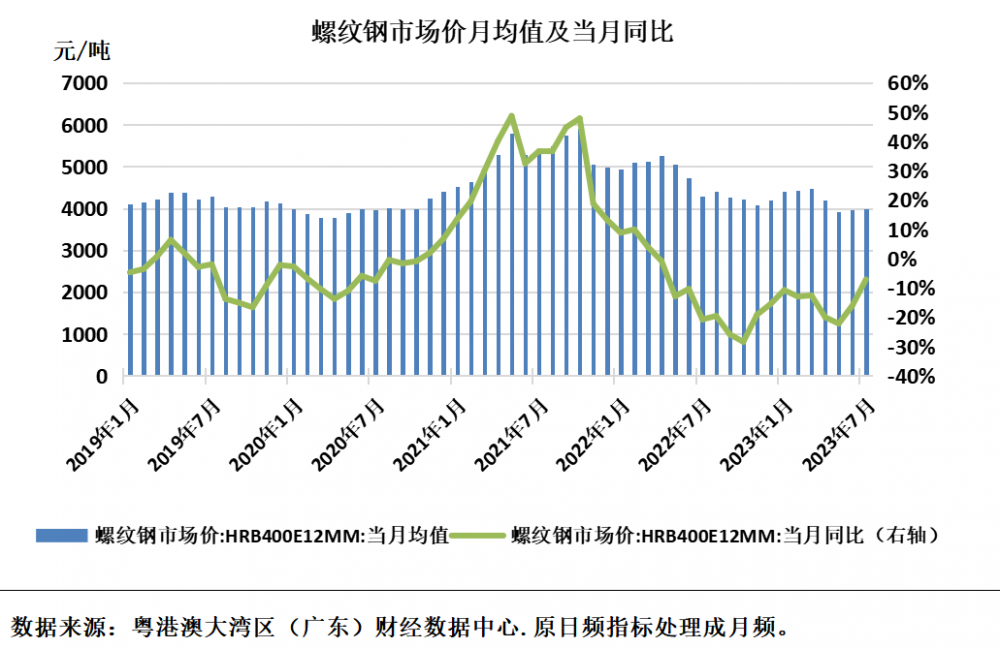 钢材价格续升。7月30日当周,建筑钢材主流贸易商周成交量环周降幅扩大、较上周下降3.4%,7月整体成交情况有所走弱,较6月下降3.1%、较去年同期则下降2.7%;库存方面,主要钢材品种社会库存较上周上升1.2%至1181.6万吨,其中螺纹钢社会库存水平上升1.7%、总库存水平上升0.1%,整体库存增速放缓;主要钢材制品价格延续回升,7月30日当周,螺纹钢、线材、热轧、冷轧以及中板的价格分别较7月23日当周上升1.1%、1.2%、3.8%、2.6%和1.3%。7月螺纹钢价格较6月均值水平有所改善,但仍低于去年同期水平。