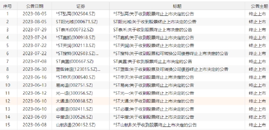中国基金报记者注意到,加上8月5日晚的阳光城和弘高创意,A股今年退市企业数已经达到30家,接近2022年全年的退市企业数量,常态化退市机制正日趋形成。