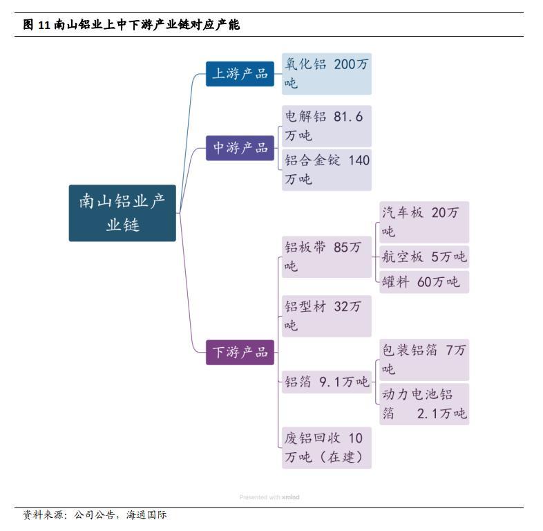 2017年后,公司先后向汽车板、锂电铝箔和航空板等深加工领域进行布局。目前,公司已拥有热电-氧化铝-电解铝-熔铸-铝型材/热轧/冷轧/箔轧/锻压-废铝回收再用的完整铝产业链。