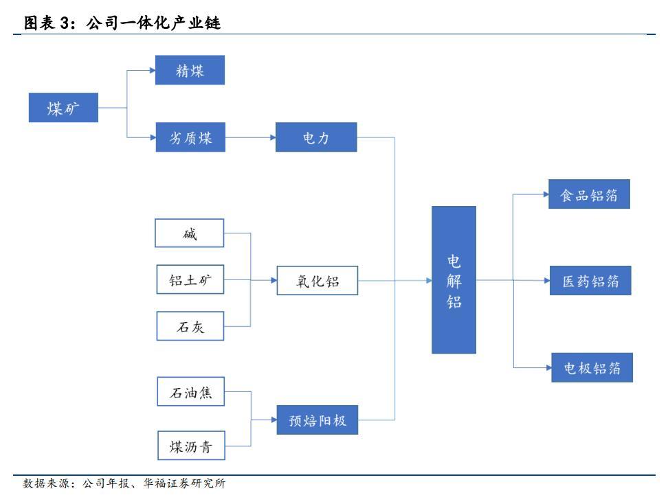 据官网,公司于2020年“借壳”新界泵业完成上市,是国内少数具有从上游铝土矿、氧化铝到电解铝、电池铝箔等铝深加工,并配套自备电厂和预焙阳极的完整一体化铝产业链企业之一。