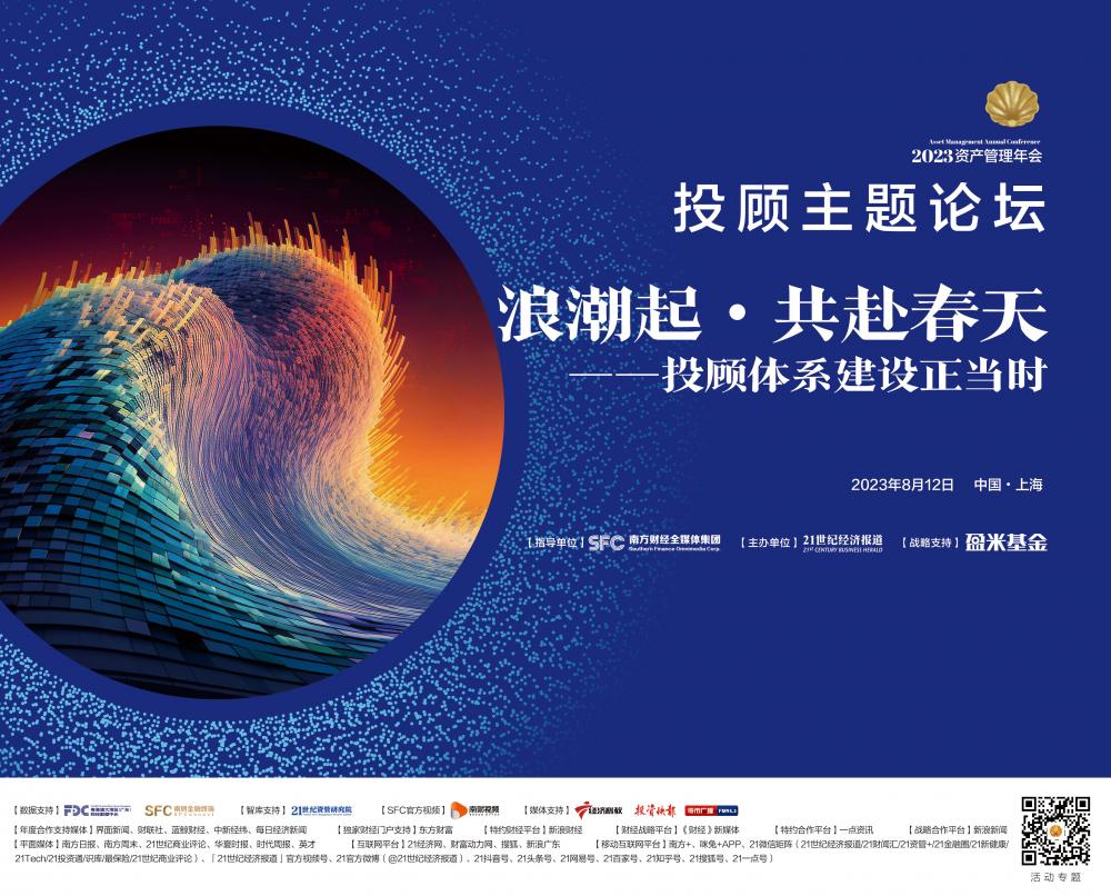 8月12日,由南方财经全媒体集团指导、《21世纪经济报道》主办的“2023 资产管理年会”将在上海虹口隆重举办。在当天下午的投顾主题分论坛上,与会嘉宾们将以“浪潮起·共赴春天——投顾体系建设正当时”为主题共议投顾体系建设的经验和难点。