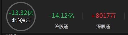北向资金全天净卖出13.32亿元,连续三日净卖出;其中沪股通净卖出14.12亿元,深股通净买入0.80亿元。