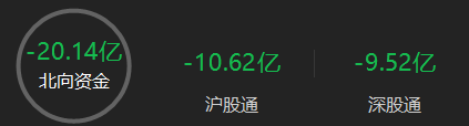 北向资金半日净卖出20.14亿元,其中沪股通净卖出10.62亿元,深股通净卖出9.52亿元。