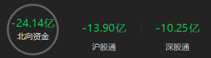 北向资金半日净卖出24.14亿元,其中沪股通净卖出13.90亿元,深股通净卖出10.25亿元。