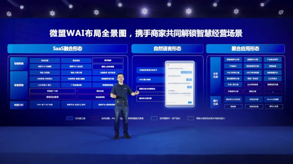 这款大模型,结合了第三方LLM模型和微盟自研技术,提升生成式内容供给等SaaS服务能力。