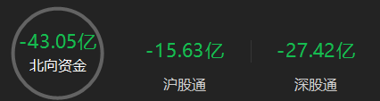 北向资金半日净卖出43.05亿元,其中沪股通净卖出15.63亿元,深股通净卖出27.42亿元。