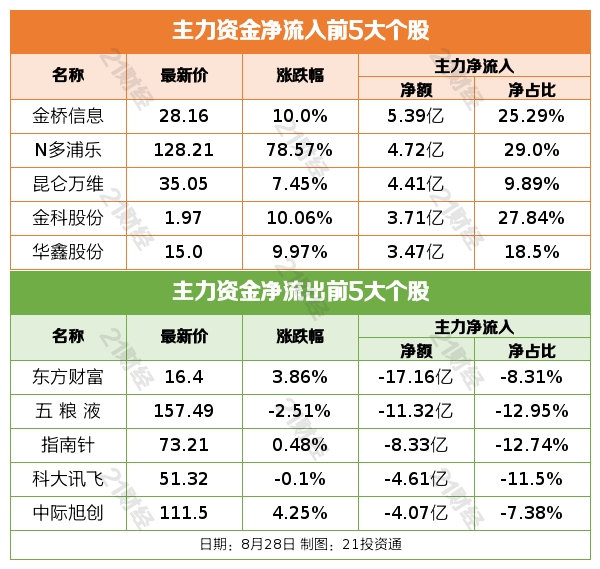 总体上个股涨多跌少,两市超3400只个股上涨。此外,两市炸板个股超80只,炸板率超70%。沪深两市成交额11266亿,较上个交易日放量3603亿。北向资金全天净卖出82.47亿元,其中沪股通净卖出42.83亿元,深股通净卖出39.65亿元。