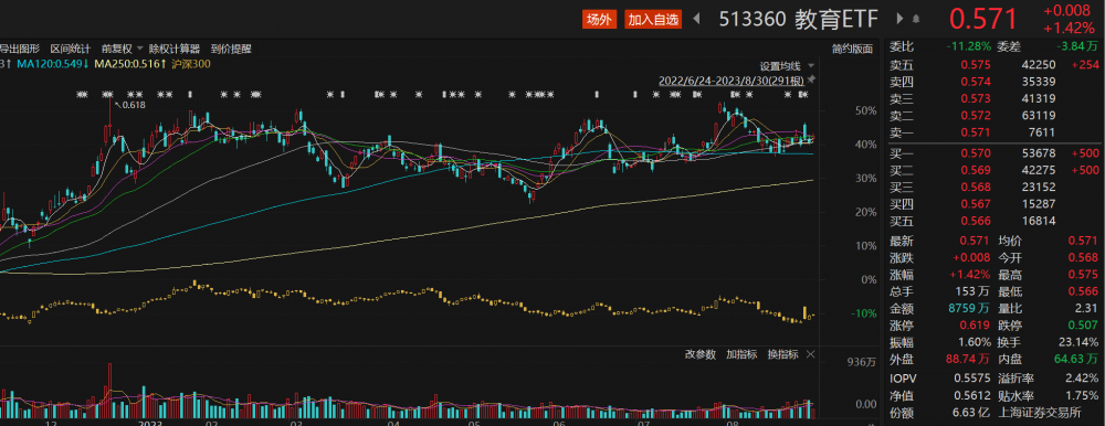 跟踪中证全球中国教育主题指数的博时教育ETF(513360)盘中一度涨超2%,现涨1.42%,溢折率2.42%,换手率超23%,成交额超8800万元。wind数据显示,该基金上个交易日资金净流入340万元,近5日资金净流入合计1360万元。