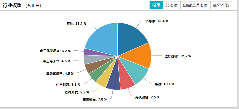 作为第二只科创板宽基指数,科创100指数于2023年8月7日正式发布。相较于科创50指数,科创100指数样本公司的行业分布均衡度较高,权重最高的半导体行业也不超过20%,除了以医疗器械和生物制品为代表的医药领域,以电池和光伏设备为代表的新能源领域,以软件开发为代表的新一代信息技术领域等也是指数的重要构成部分,更有利于分散风险。