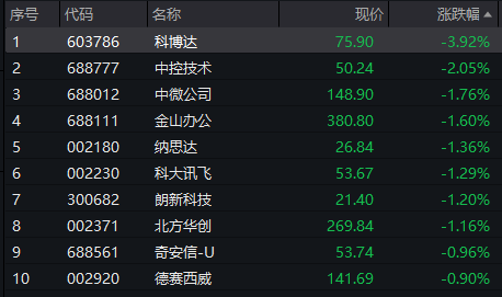 其中,科博达跌近4%,中控技术跌超2%,中微公司、金山办公、纳思达、科大讯飞等股跟跌。